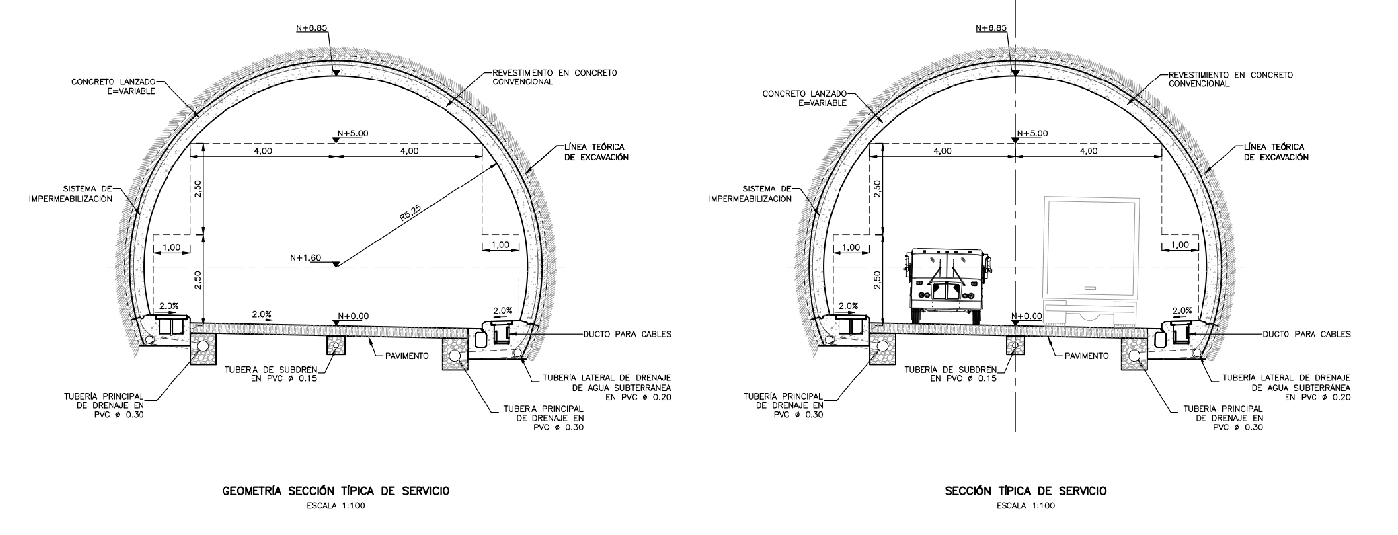 Pequeña Descripción: El túnel de Pueblo Nuevo se encuentra localizado en el Municipio de Primavera y corresponde al cuarto sector diseñado del proyecto en el Km. 6+189 al Km. 6+522 donde finaliza la salida del túnel y continúa la calzada. Este proyecto muestra una solución a los problemas de movilidad que se presentan en el acceso y la salida entre Camilo C – y Primavera, buscando el mejoramiento en cuanto a capacidad y niveles de servicio a través del paso mediante un túnel en el sector de Pueblo Nuevo.